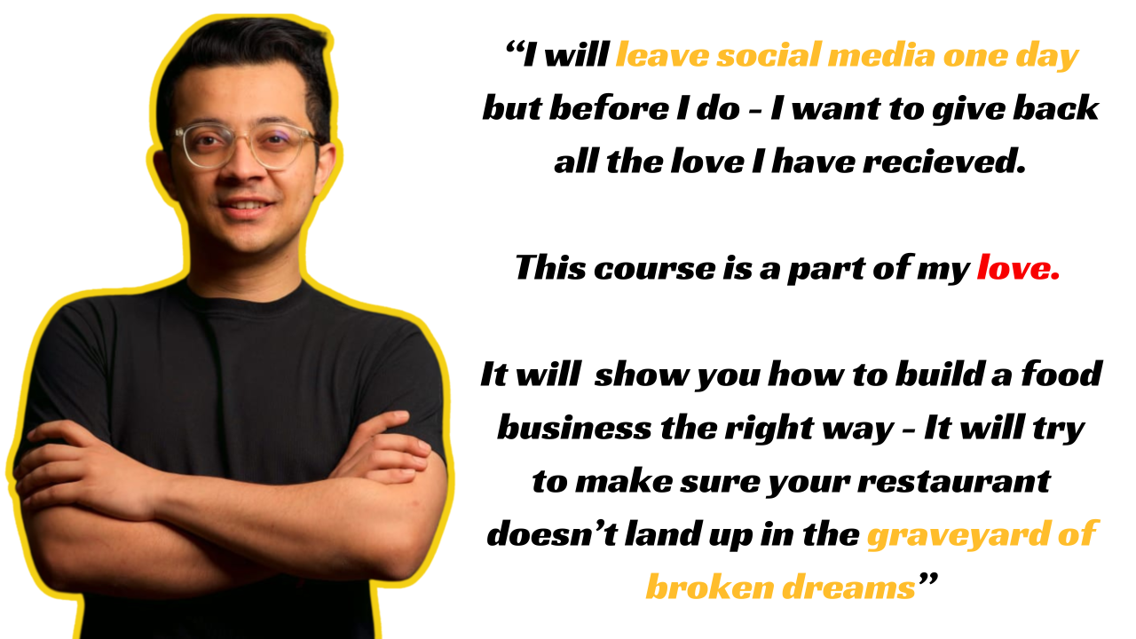 I've always thought that if course sellers/teachers/coaches know things so well - Why don't they do things themselves!? Surely they can make more money doing that. Anyway, The answer is because some people are better at teaching than they are at doing. I have had the pleasure to brag that I am both - I run multiple successful restaurants in Delhi & I am a decent teacher (at least that's what my Instagram community says 😛) I don't just talk - I have done the things I am teaching here & they have worked well. This is my effort to share them with the world!